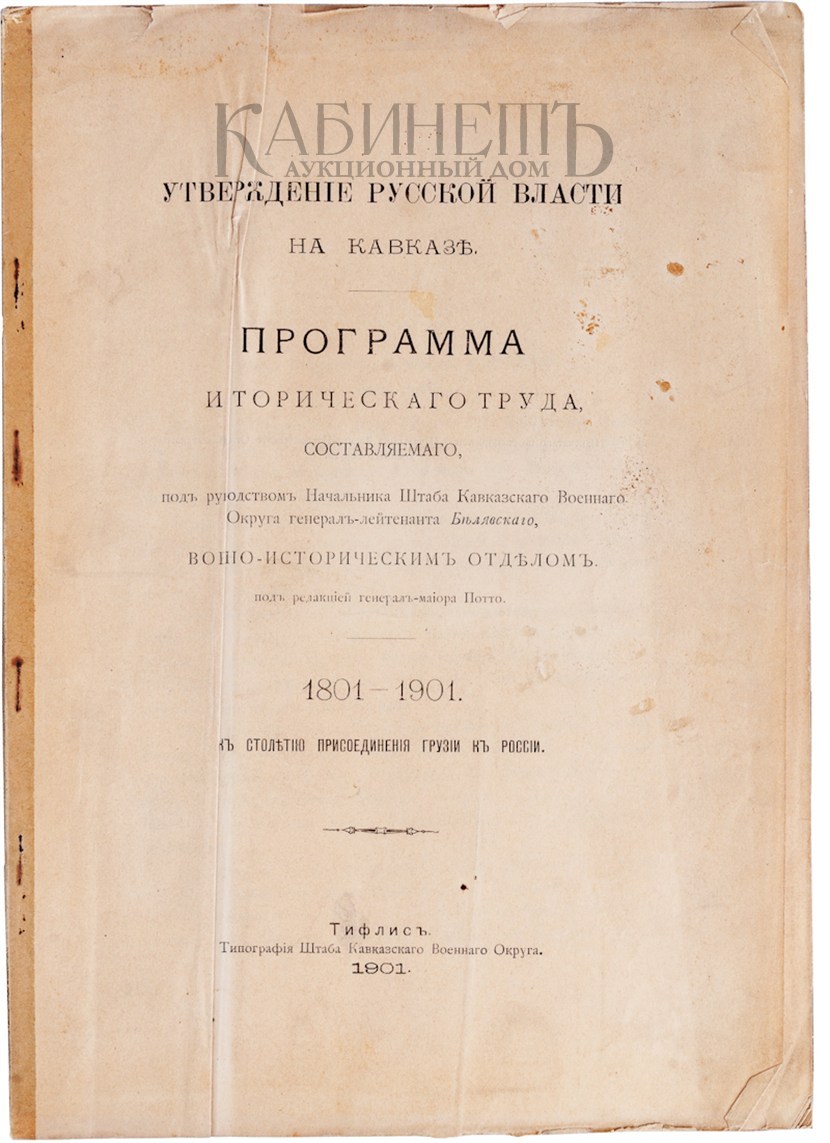 2) Потто [В.А.]. Утверждение русской власти на Кавказе. Программа исторического труда, 1801 – 1901. К столе-