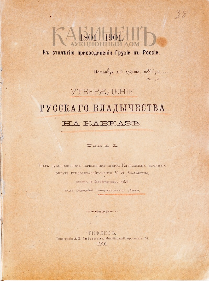 тию присоединения Грузии к России. Тифлис, Типография Штаба Кавказского Военного Округа, 1901.