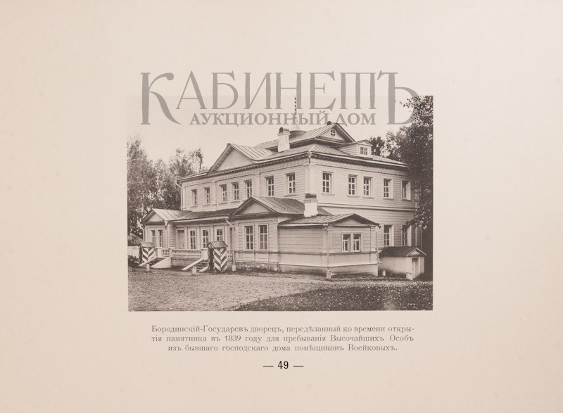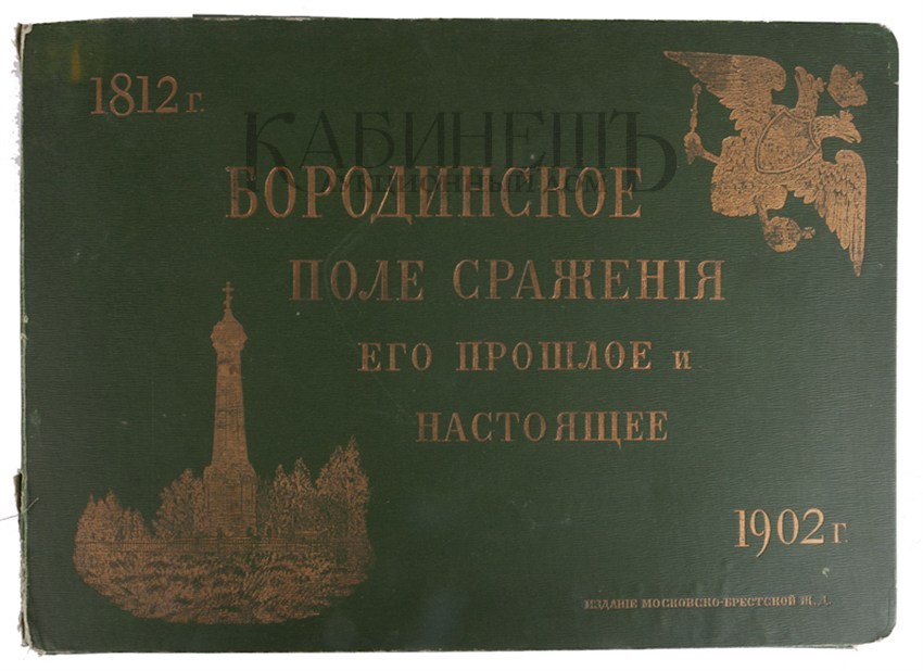 1) Альбом в издательской папке с золотым тиснением. В папке содержится 60 отдельных листов с иллюстрациями, 2 плана сражения, а также краткое описание Бородинского сражения (24 - 26 августа 1812 г.) с расписанием войск, участвующих в сражении при Бородине, Е. Новицкого, краткий очерк «Спасо-Бородинский монастырь» А.Клокачева. На титульном листе и папке владельческие пометки.