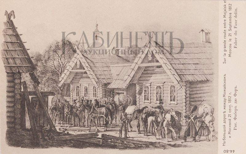 Подборка из книги и открыток: 1) Бородинское поле сражения. Его прошлое и настоящее. 1812 – 1902 гг. М., Издание Московско-Брестской ж.д., [1902]. 2) Набор из 14 открыток «Русская жизнь в эпоху Отечественной войны». Издание Общины Св. Евгении, СПб., [1912]. 3) Набор из 19 открыток, посвященных войне 1812 года. Рисунки Фабера дю Фора. СПб., Издание Общины Св. Евгении, [конец ХIX в.].
