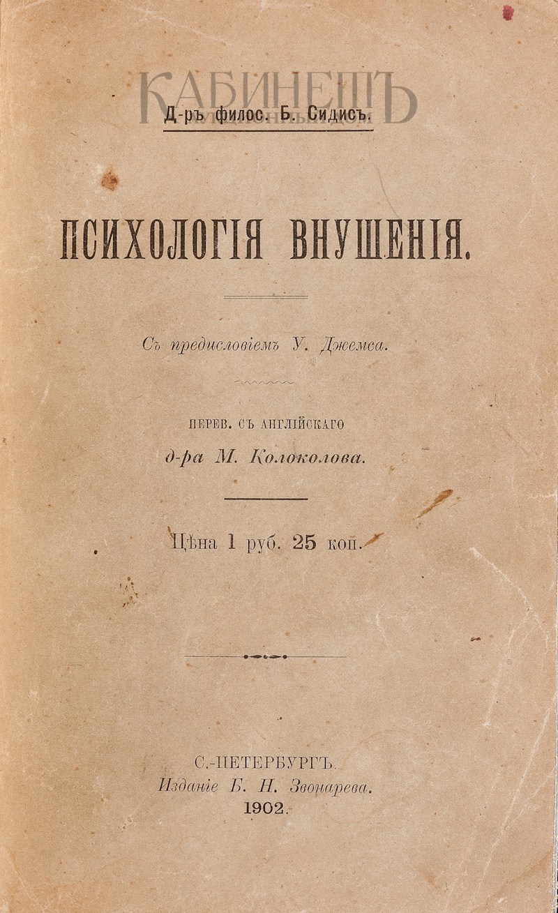 Сидис Б. Психология внушения. СПб., Изд. Б.Н. Звонарева, 1902.