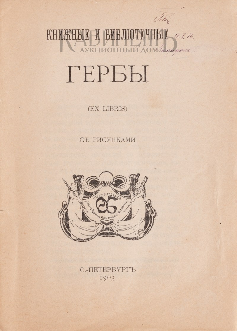 Книжные и библиотечные гербы (exlibris) с рисунками. СПб., типография А.С. Суворина, 1903.