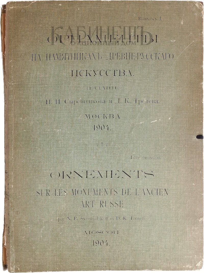 Сырейщиков Н.П., Тренев Д.К. Орнаменты на памятниках древнерусского искусства. В 3-х выпусках. М., литография товарищества И.Н. Кушерева и Ко, 1904 – 1916.