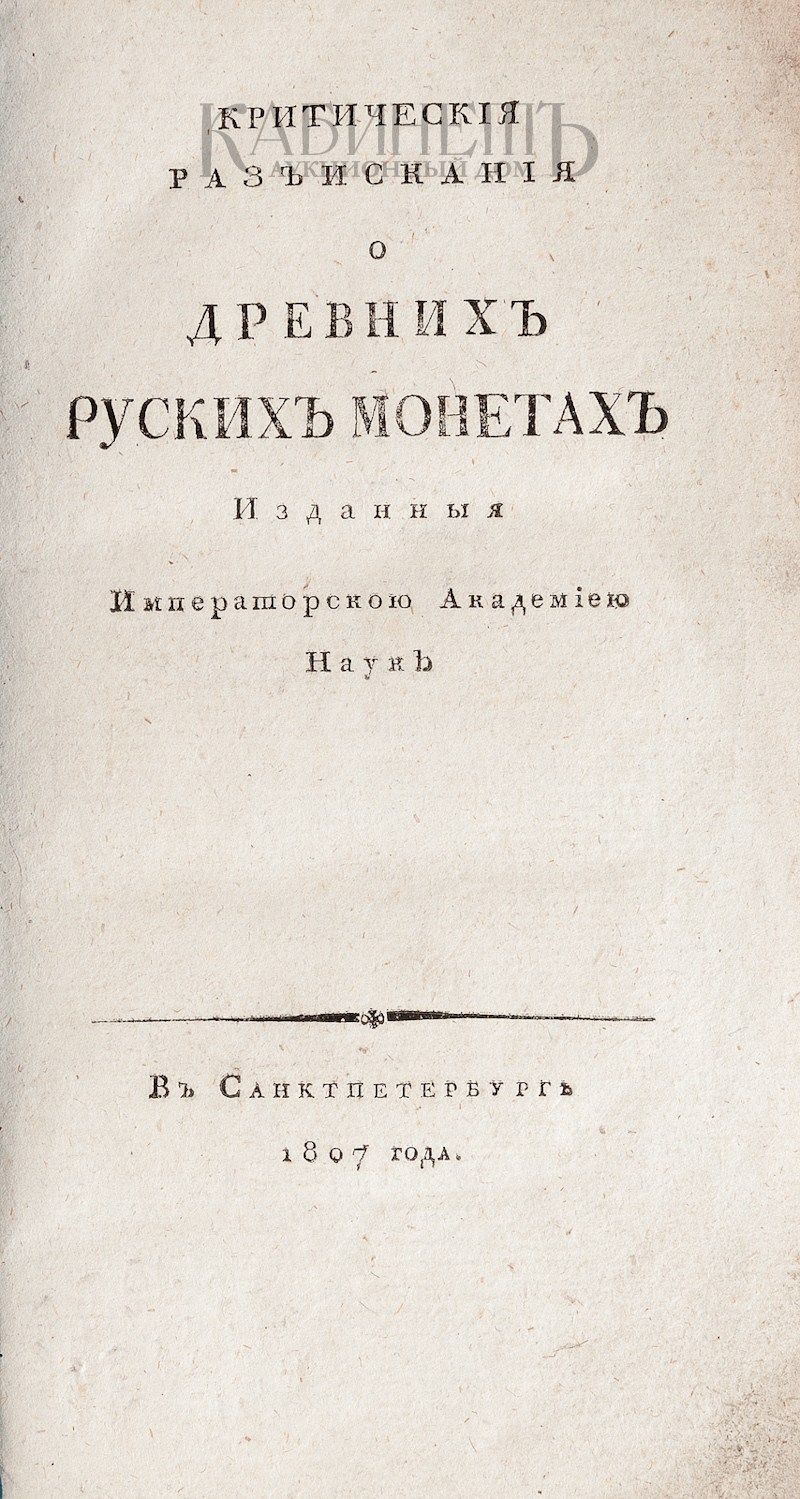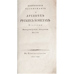 [Круг Ф.И.] Критические разыскания о древних русских монетах. СПб., Издание Императорской Академии Наук, 1806.