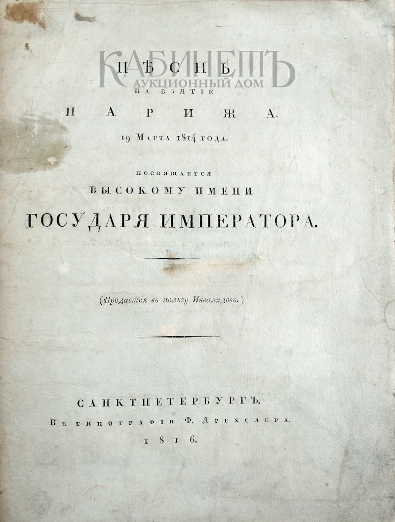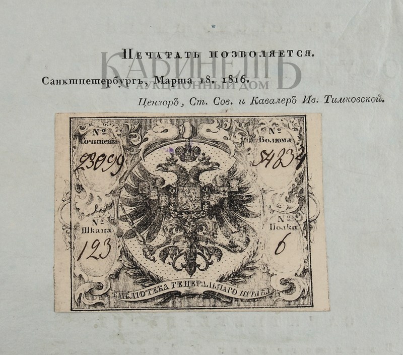 Экземпляр в современной бумажной обложке. На оборотной стороне титульного листа расположен экслибрис: «Библиотека Генерального штаба».