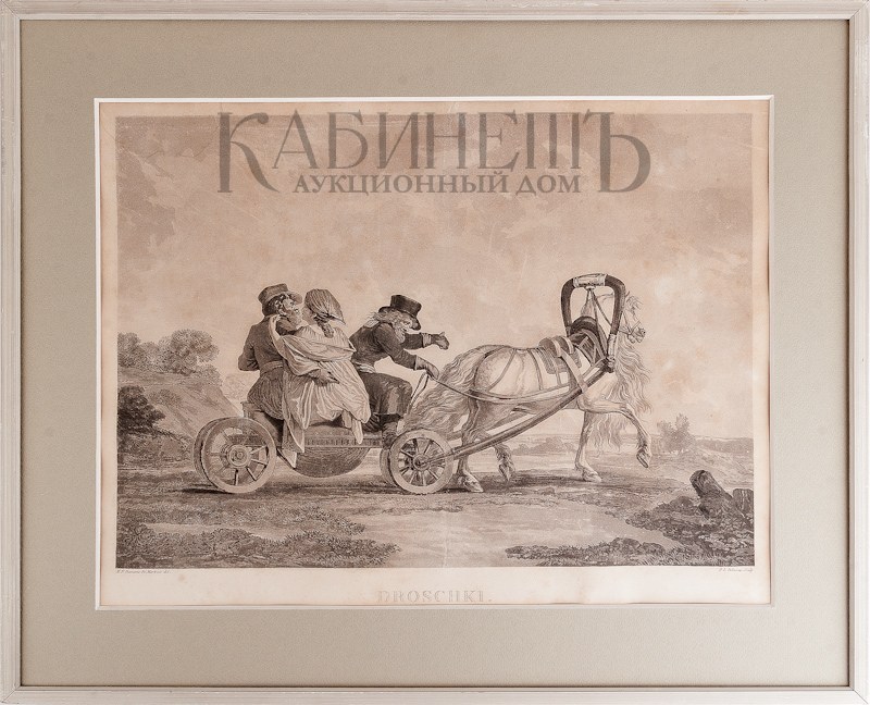 Droschki. [Дрожки]. Рисовал M.F. Demame de Martrait [Демам–Демартре М. Ф.] Гравировал P.L. Debucour [Дебюкур] Париж. 1820 - е гг.