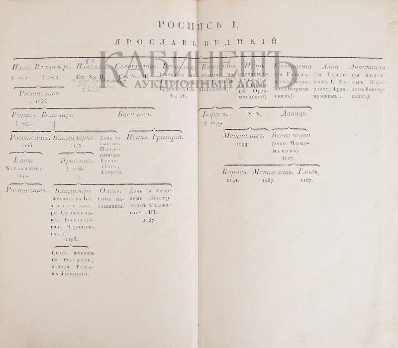 Приложение к первому изданию «Истории Государства Российского» Карамзина Н.М. 9 раскладывающихся листов с родословными таблицами.