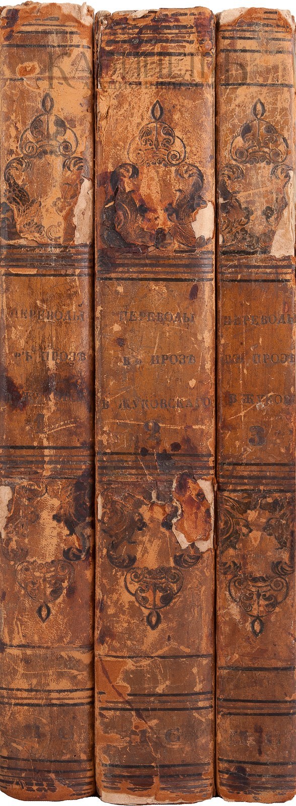 Экземпляр в старинных полукожаных переплетах, незначительные утраты по корешкам. Сохранность хорошая.