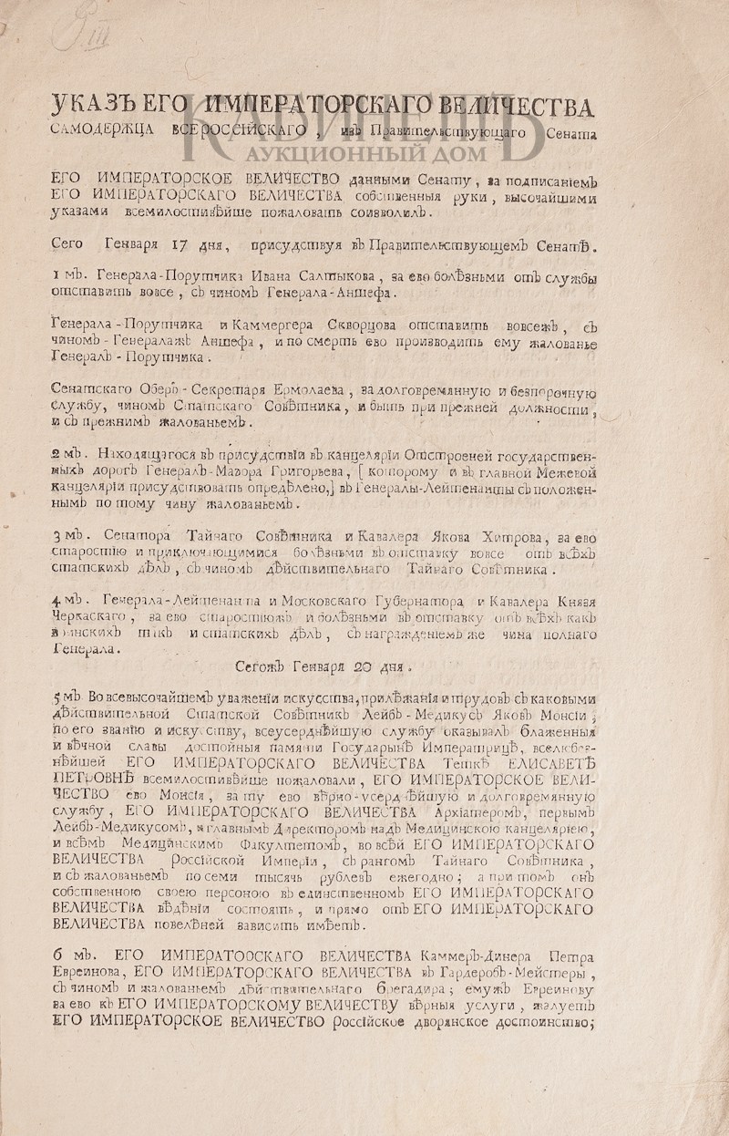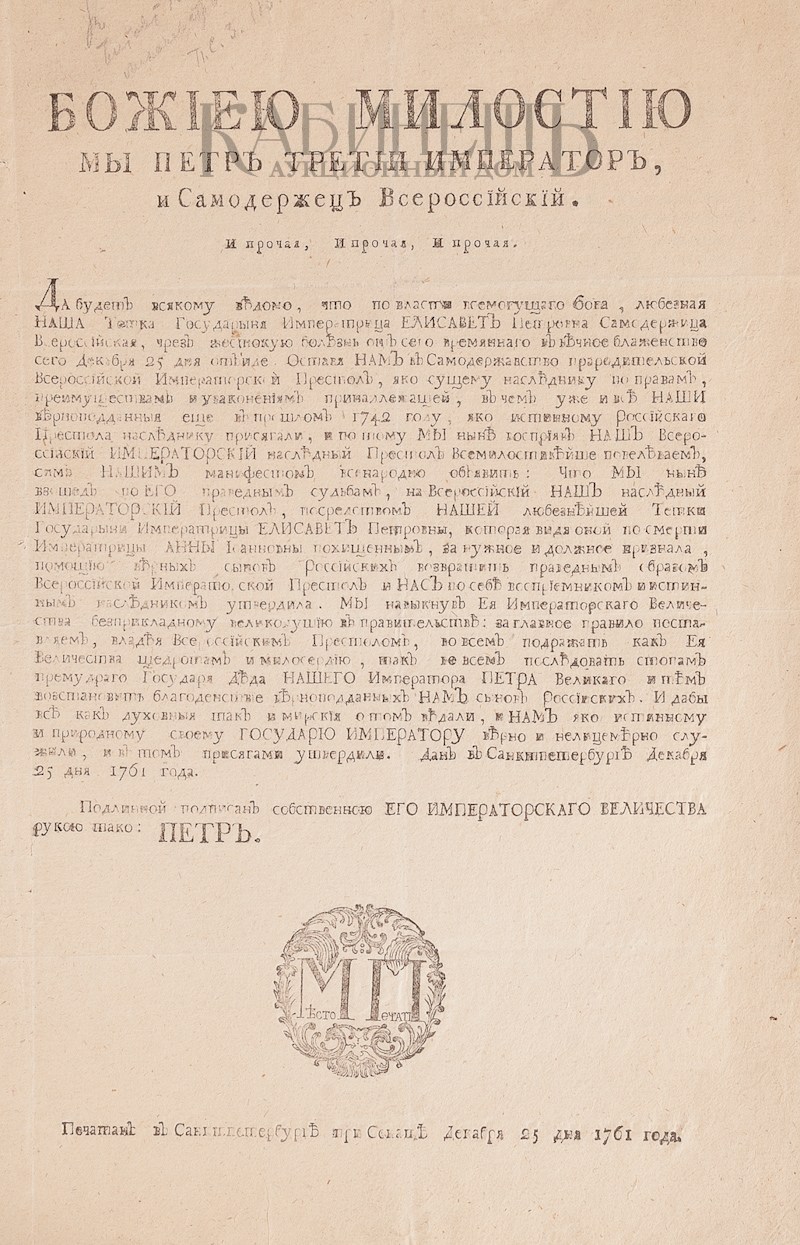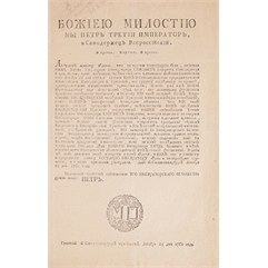 Размеры: 34 х 22,5 см. После смерти Петра III все его указы были уничтожены. Редкость!