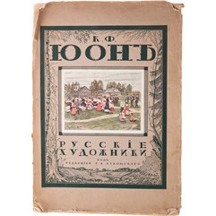 Экземпляр в бумажной издательской обложке с литографированной иллюстрацией на верхней обложке и 59 листами иллюстраций. Верхняя обложка отходит от блока. Корешок частично утрачен. Многочисленные заломы и утраты по нижнему и правому краям верхней обложки.