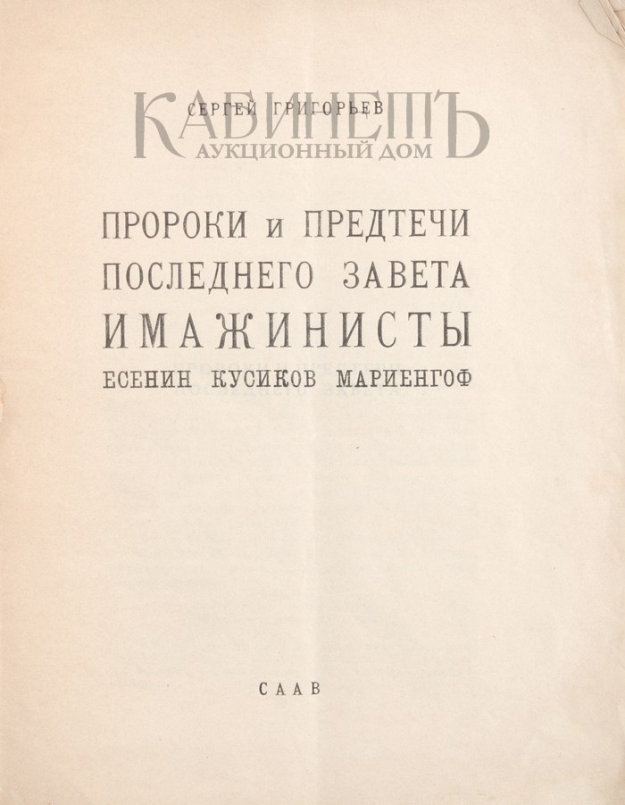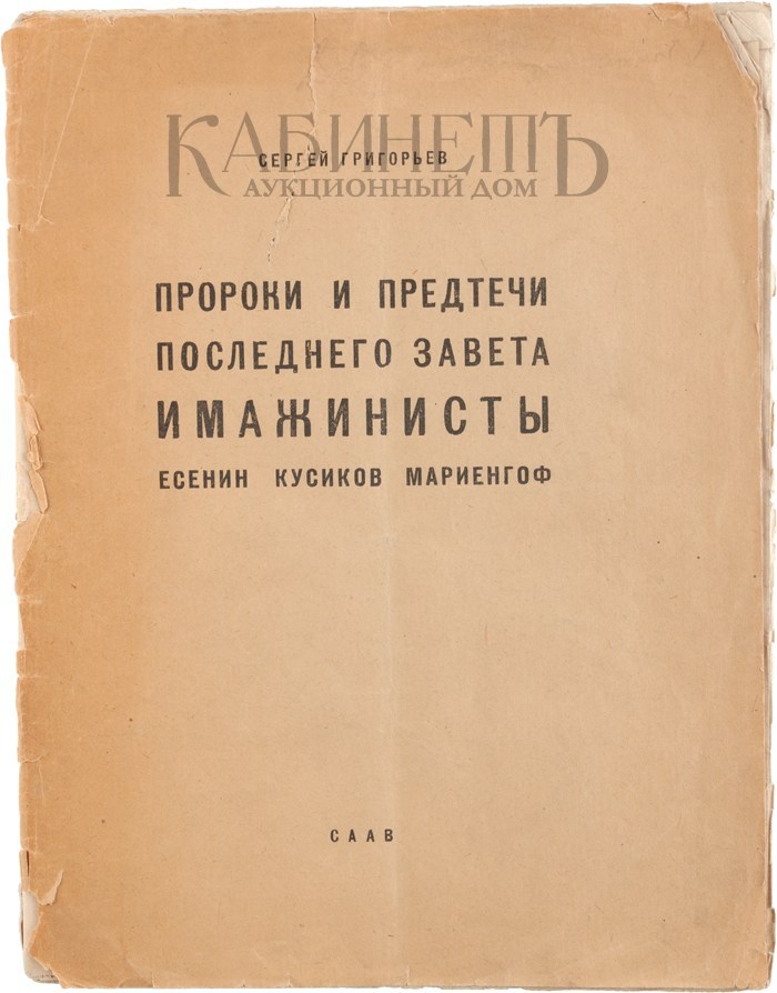 Григорьев С. Пророки и предтечи последнего завета. Имажинисты: Есенин, Кусиков, Мариенгоф. [М.], СААВ, [1921].