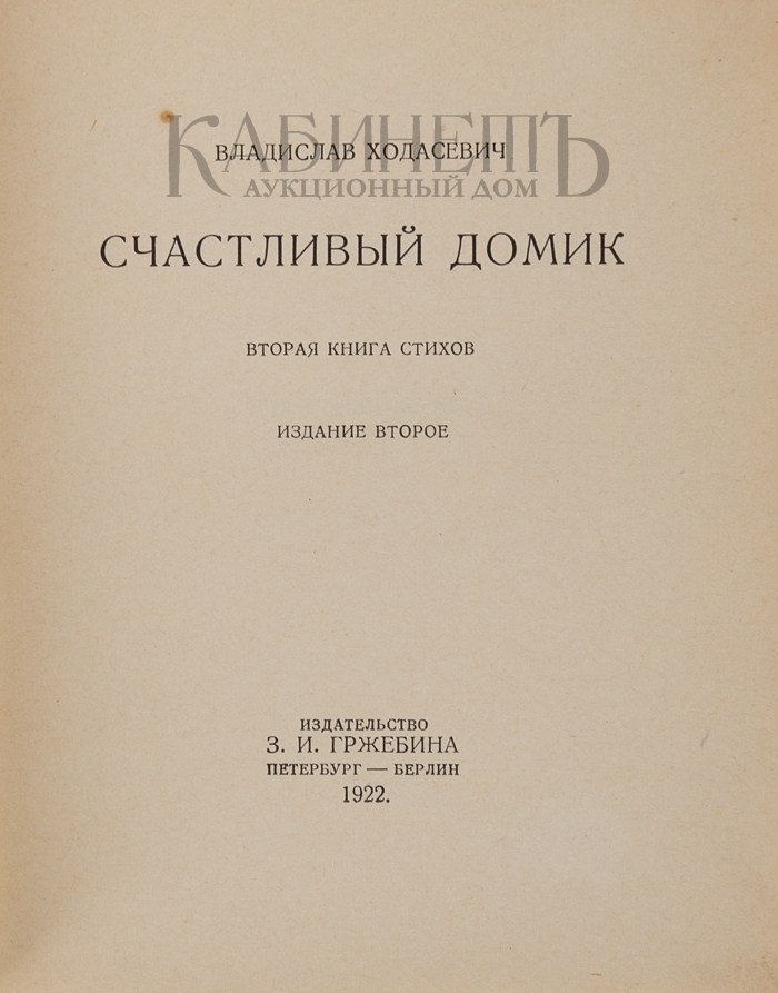 Ходасевич В. Счастливый домик. Вторая книга стихов. Издание второе. Пг. – Берлин, издательство З.И. Гржебина, 1922.