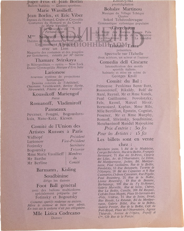 Очень редкое летучее издание - двухсторонняя афиша к Балу, который состоялся в Париже 11 июля 1924 г.