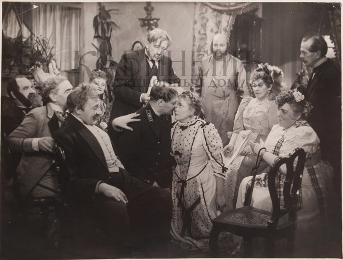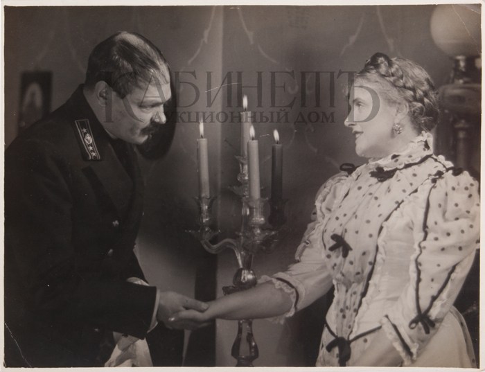 4) Ольга Андровская в роли Вареньки и Николай Хмелев в роли Беликова в художественном фильме «Человек в футляре». (Возле канделябра).