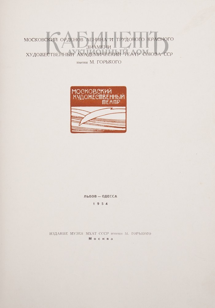 12) Московский Орденов Ленина и Трудового Красного Знамени Художественный Академический Театр Союза ССР имени М. Горького. Львов-Одесса. К 300 летию воссоединения Украины с Россией. М., издание музея МХАТ СССР имени М. Горького, 1954.