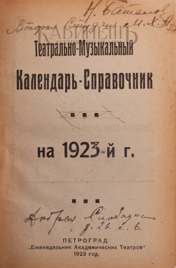 11) Театрально-музыкальный календарь- справочник на 1923 г. Пг., Еженедельник Академических Театров, 1923.
