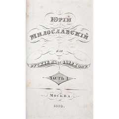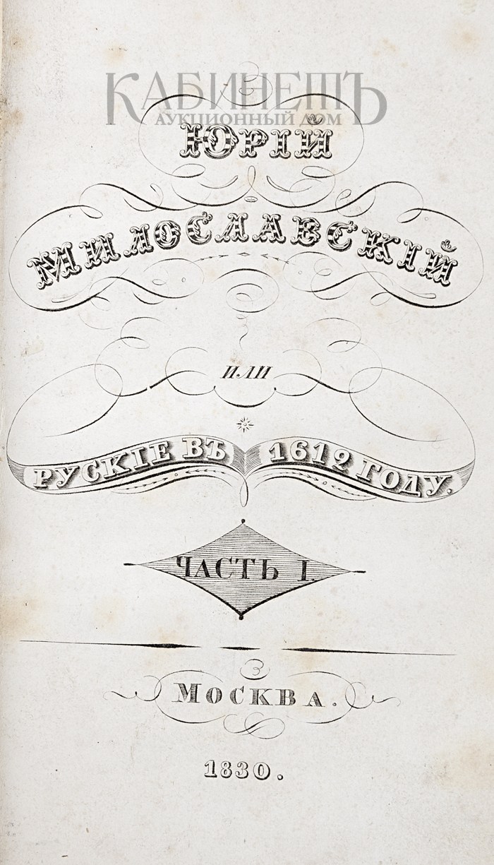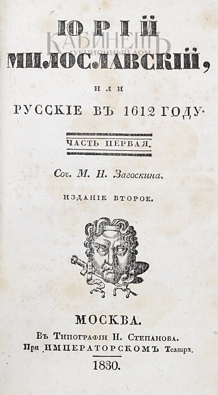 Загоскин М.Н. Юрий Милославский или русские в 1612 году. Издание второе. В трех частях, в трех книгах. М., типография Н. Степанова, 1830.