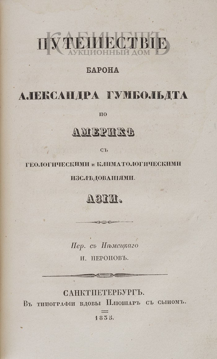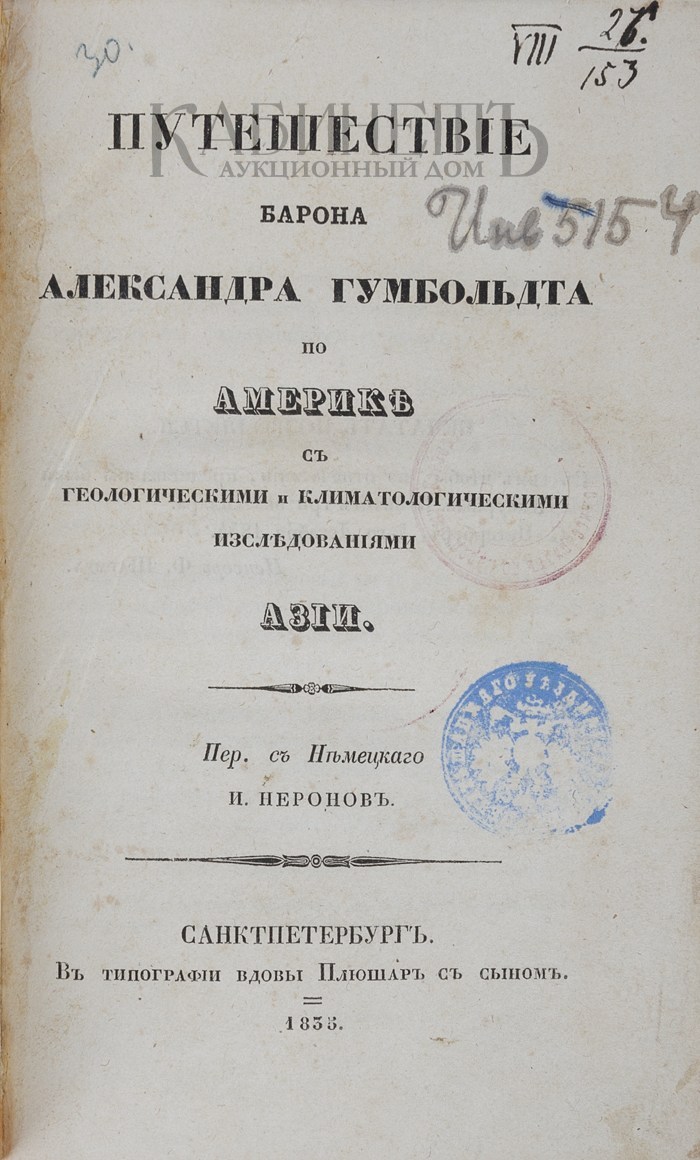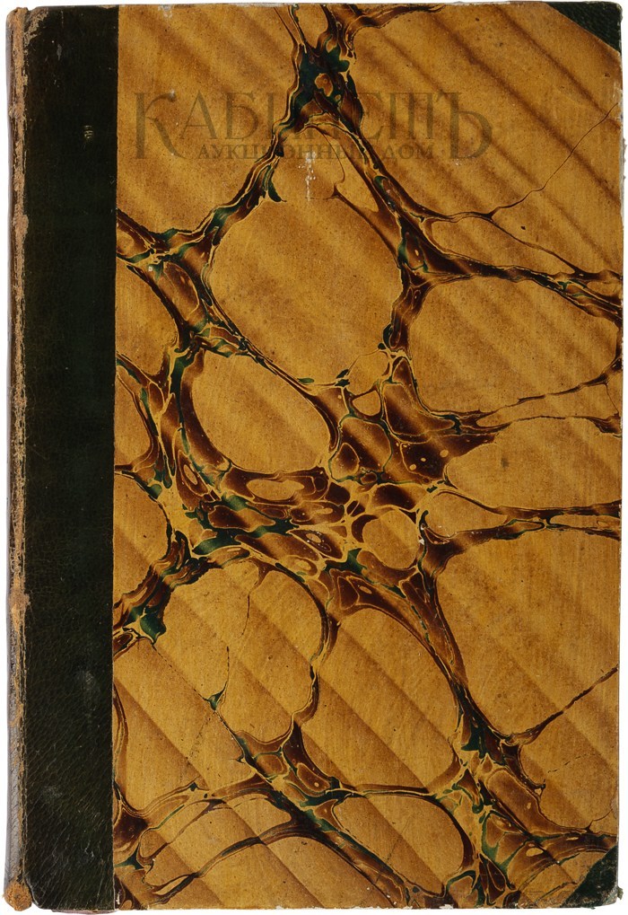Экземпляр в старинном картонажном переплете со следами золотого тиснения по корешку, с ляссе. На титульном листе плохо читаемые штампы, владельческие пометки орешковыми чернилами и тушью.