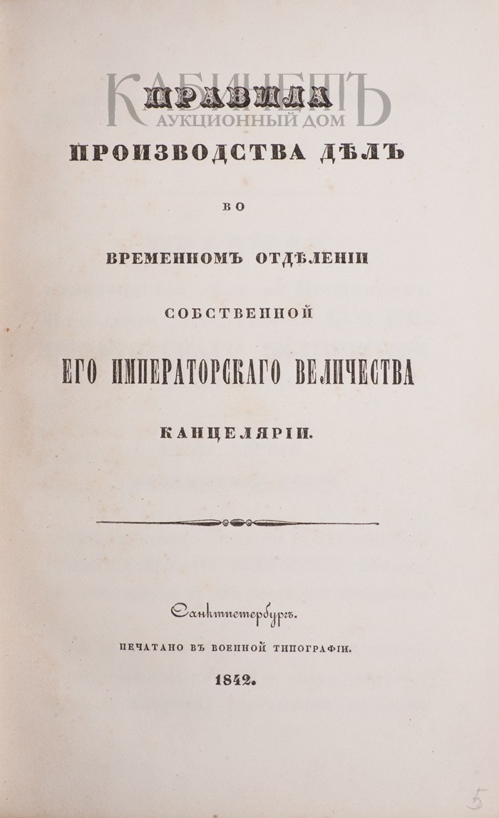 Правила производства дел во временном отделении собственной Его Императорского Величества канцелярии. СПб., печатано в военной типографии, 1842.