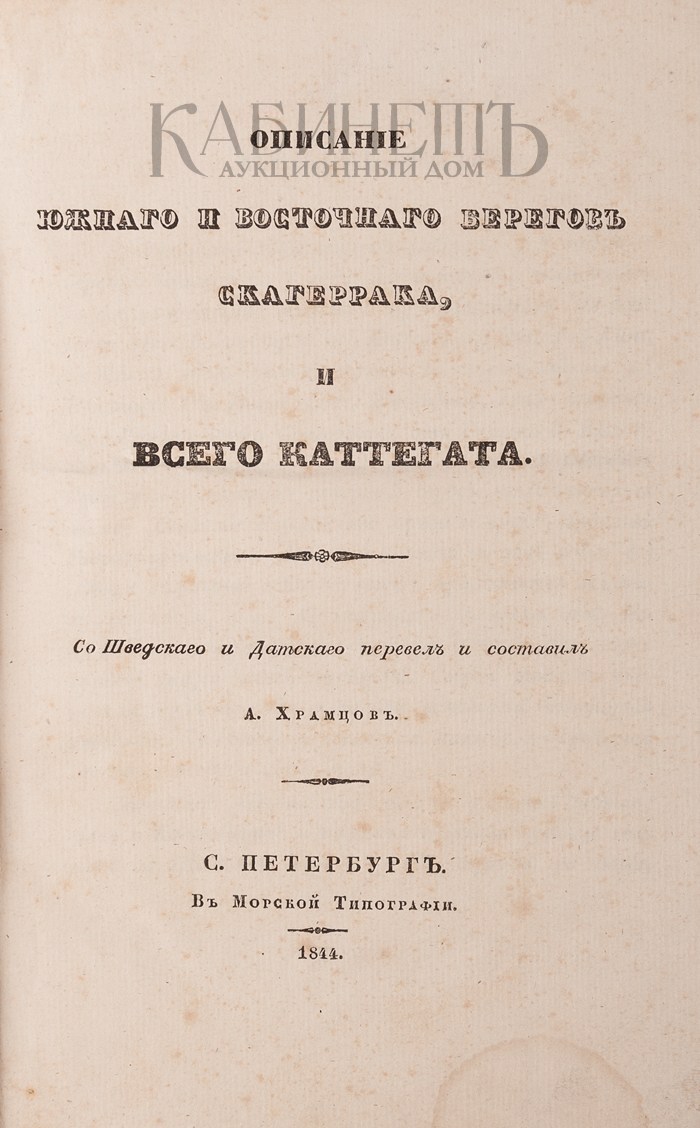 Храмцов А. А. Описание южного и восточного берегов Скагеррака, и всего Каттегатта. Со шведского и датского перевел и составил А. Храмцов. СПб., В Морской Типографии, 1844.
