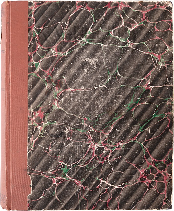 Экземпляр в старинном владельческом составном переплете начала XX века, коленкоровый корешок и картонные, обклеенные мраморной бумагой, крышки.