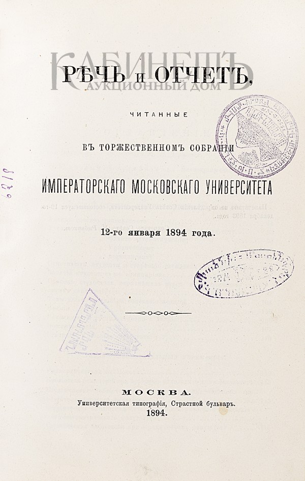 Экземпляр в современном коленкоровом переплете с золотым тиснением по корешку и крышкам. На форзаце владельческая пометка орешковыми чернилами. На титульном листе и некоторых страницах плохо читаемые штампы на армянском языке.