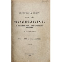 2) Проект статей об авторском праве на литературные, музыкальные и художествененные произведения. СПб., Государственная типография, 1898.