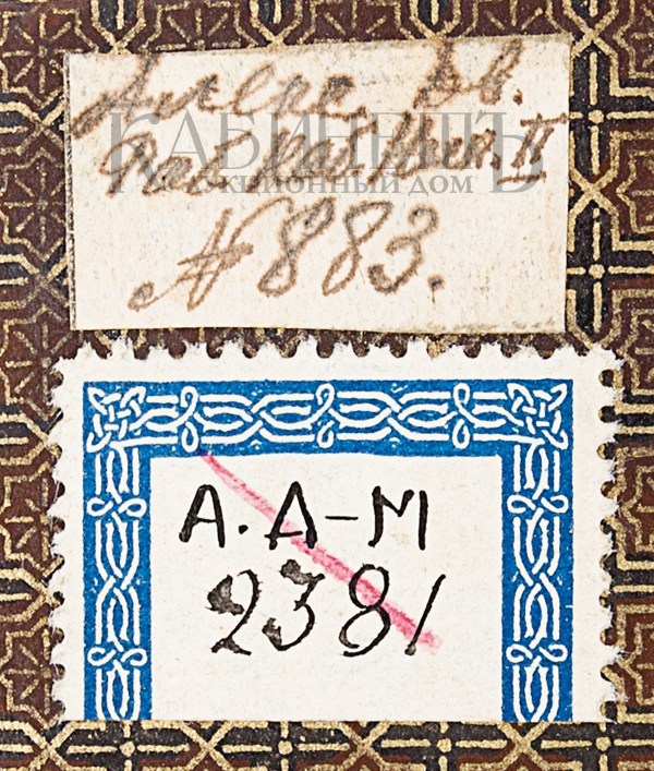 Экземпляр в издательском подносном цельнокожаном переплете с золотым тиснением по верхней крышке. Тройной В очень хорошей сохранности. На форзаце расположен экслибрис библиотеки Николая II: «Рабочий кабинет Николая II №883». Личный экслибрис Николая II.