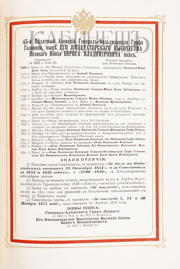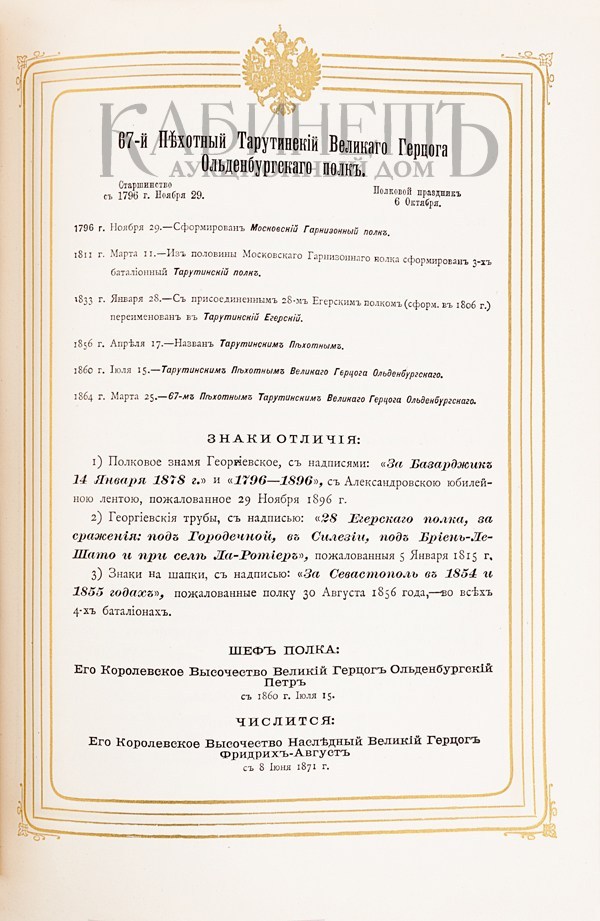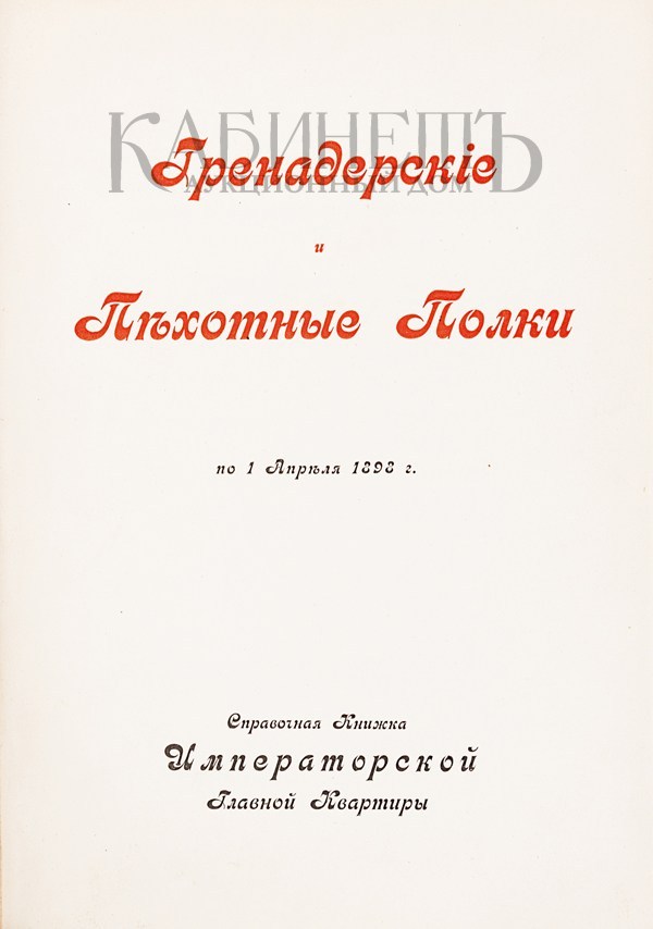 Гренадерские и Пехотные полки по 1 апреля 1898. Справочная Книжка Императорской Главной Квартиры. СПб., Типография П.П. Сойкина, 1898.
