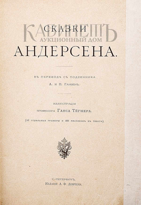 Сказки Андерсена. В переводе с подлинника А. и П. Ганзен. Иллюстрации профессора Ганса Тегнера. (42 отдельные гравюры и 189 рисунков в тексте). СПб., издание А.Ф. Девриена, [1899].