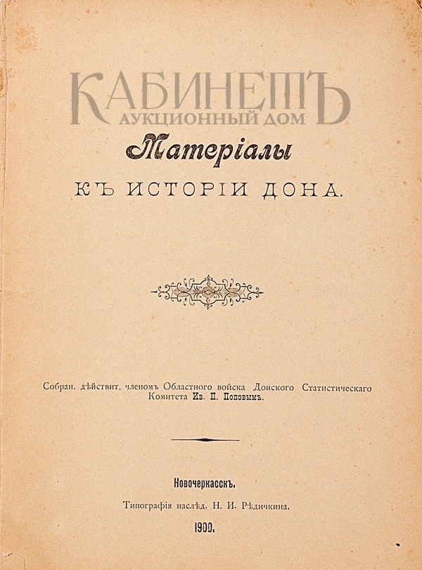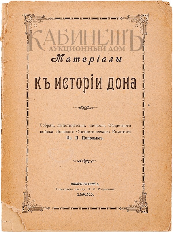 Попов Ив.П. Материалы к истории Дона. Новочеркасск, Типография наследника Н.И. Редичкина, 1900.