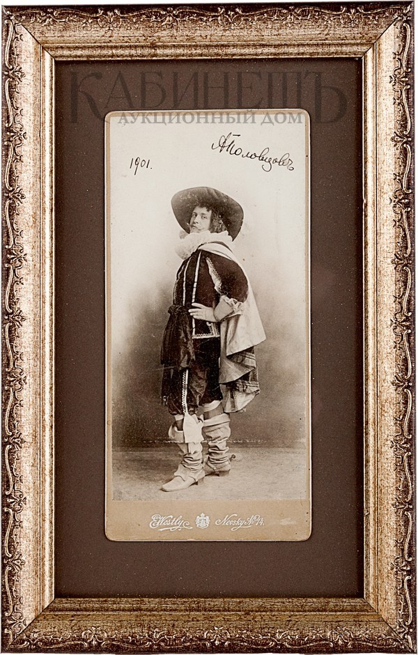 Бумага, фотография, орешковые чернила. Фотография оформлена в современную рамку со стеклом. В верхней части фотографии расположен автограф А. Половцева: «А.Половцев 1901».