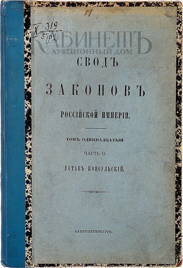 Свод законов Российской Империи, повелением Государя Императора Николая Первого составленный. Устав консульский. Том XI, часть II. СПб., Государственная типография, 1903.