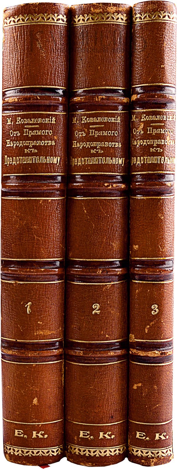 Экземпляр в старинных полукожаных переплетах с золотым тиснением по корешку, под переплетом в томах II и III сохранена издательская обложка, издание в хорошей сохранности.