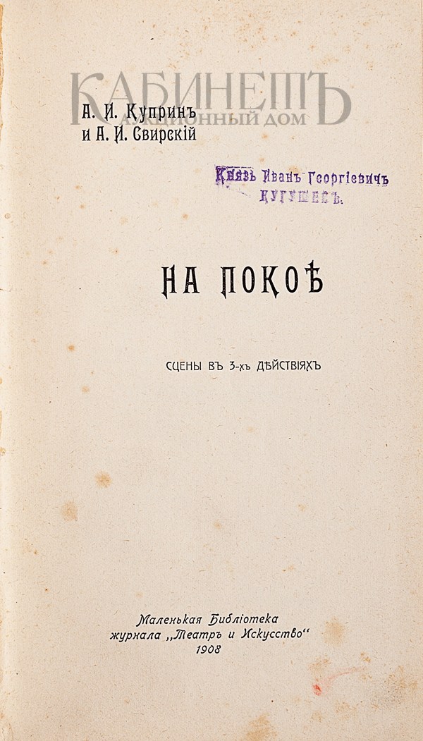 Экземпляр в полукожаном издательском переплете с полихромным тиснением по корешку. На титульном листе штамповый экслибрис: «Князь Иван Георгиевич Кугушев». Потертости переплета, загрязнение страниц книги.