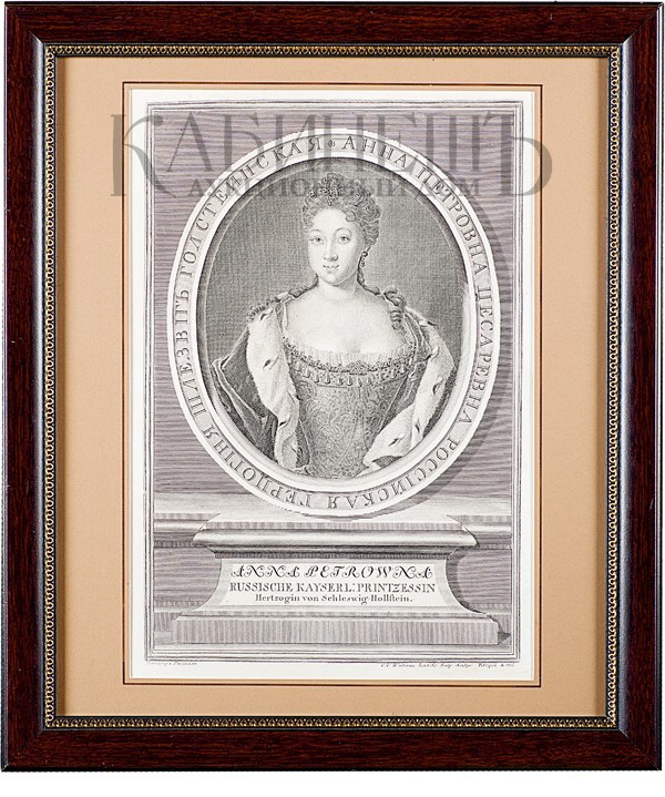 Портрет Анны Петровны. Гравюра. Рисовал И.Г. Таннауер. Гравировал Х.А. Вортман. СПб., 1736 г.