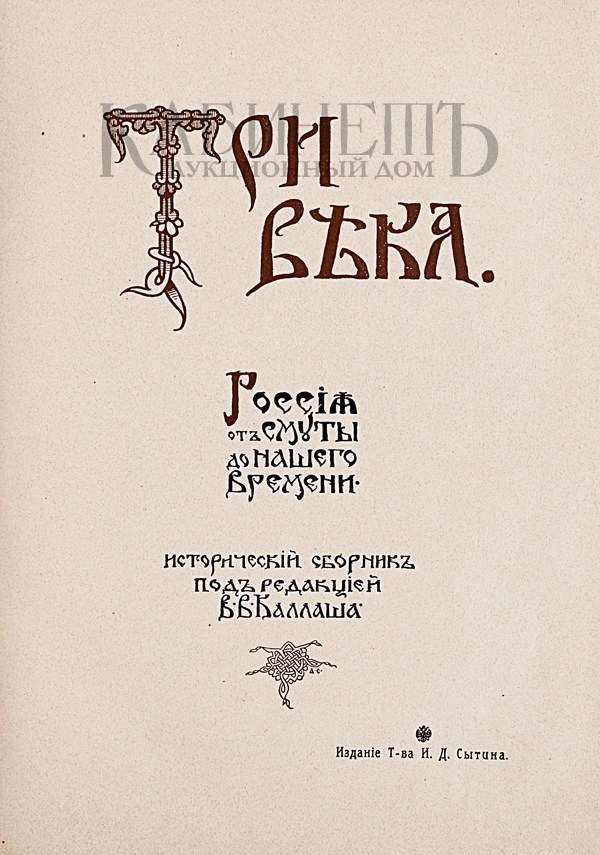 Три века. Россия от смуты до нашего времени. Исторический сборник под редакцией В.В. Каллаша. В 6-и тт. М., издание т-ва И.Д. Сытина, 1912-1913.