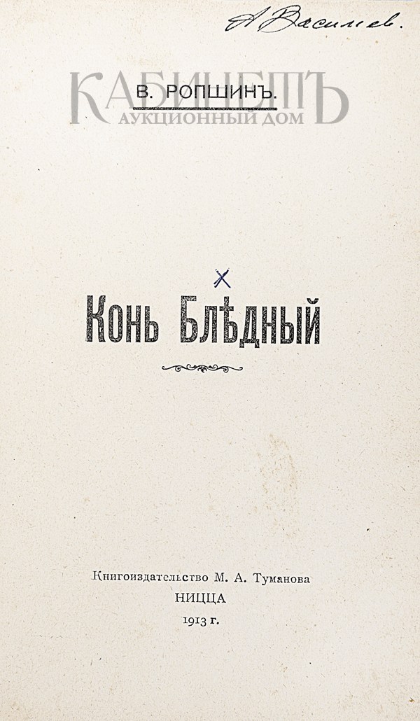 Савинков Борис Викторович (1879–1925) — русский террорист, политический деятель, социал-демократ, затем один из лидеров партии эсеров, руководитель Боевой Организации партии эсеров, участник Белого движения, писатель – прозаик, публицист, мемуарист; литературный псевдоним — В. Ропшин.