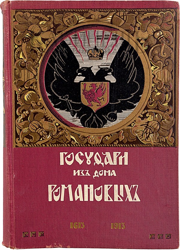 Экземпляр в издательских художественных коленкоровых переплетах с полихромным и конгревным тиснением эмблемы Дома Романовых по корешку и верхним крышкам. Лисьи пятна на страницах. Владельческие пометки красным карандашом в тексте.