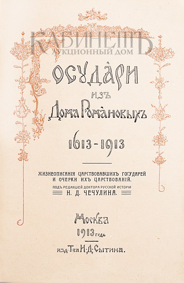 Государи из Дома Романовых. 1613–1913. Жизнеописание царствовавших государей и очерки их царствования. Под редакцией Н.Д. Чечулина. М., издание Т-ва И.Д. Сытина, 1913.
