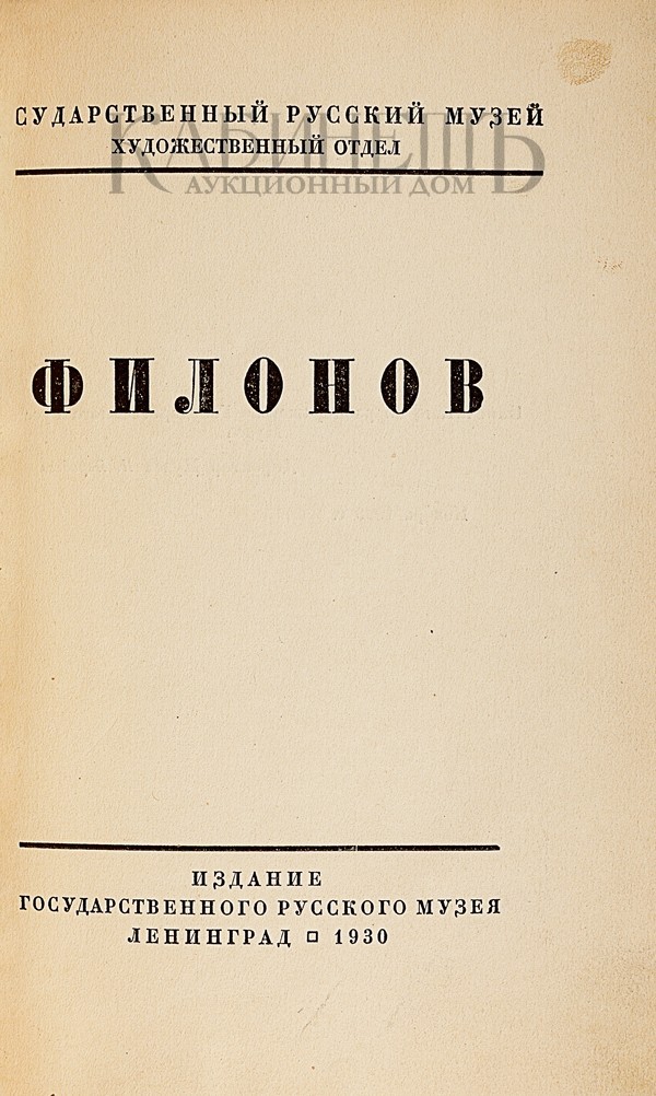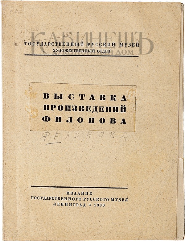 1) Филонов. Ленинград, издание Государственного Русского музея, 1930. Формат издания: 18 х 13,5 см. 41 с., [2].