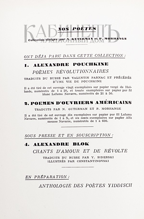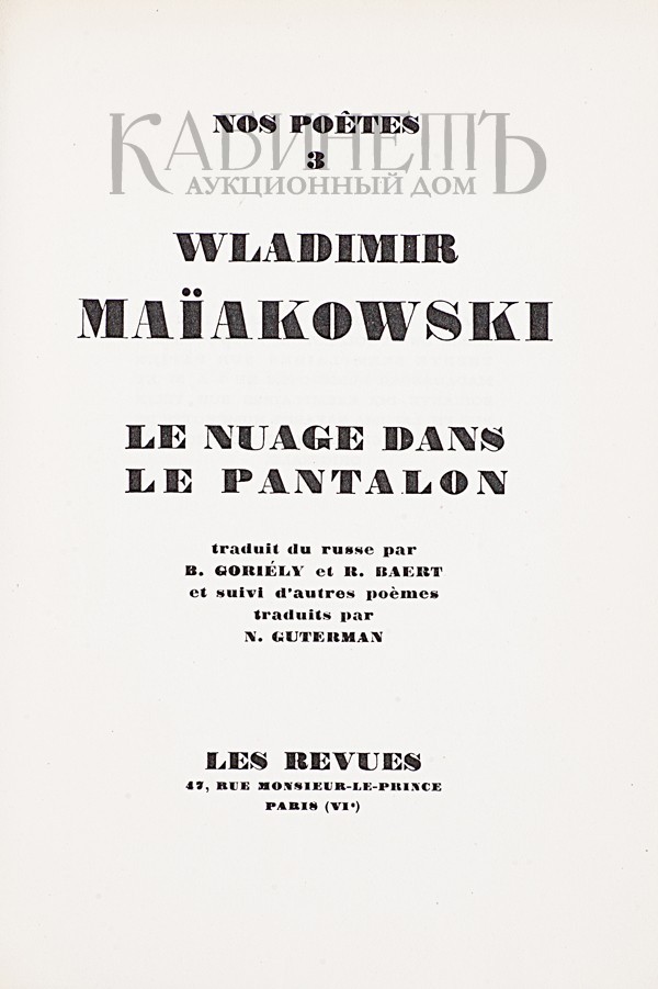 Maïakowski W. Le nuage dans le pantalon. Paris, Les Revues, 1930. [Маяковский В. Облако в штанах. Париж, 1930].