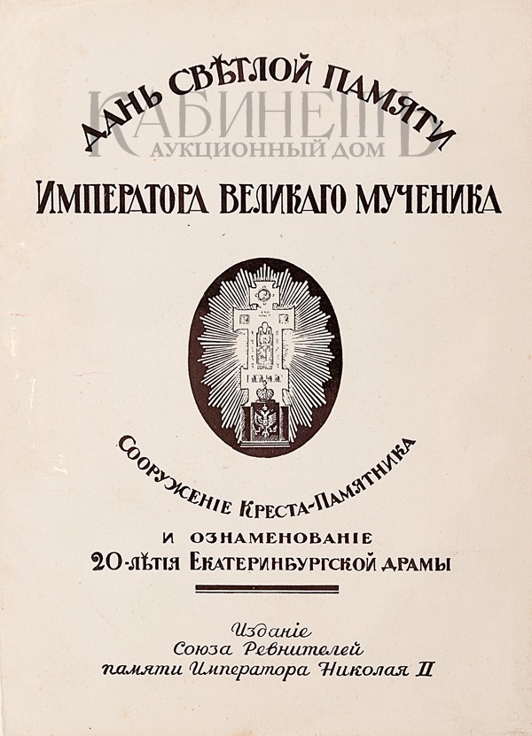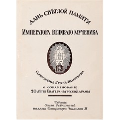 Дань светлой памяти Императора Великого Мученика. Сооружение Креста-Памятника и ознаменование 20-летия Екатеринбургской драмы. Париж, издание Союза ревнителей памяти императора Николая II, 1939.