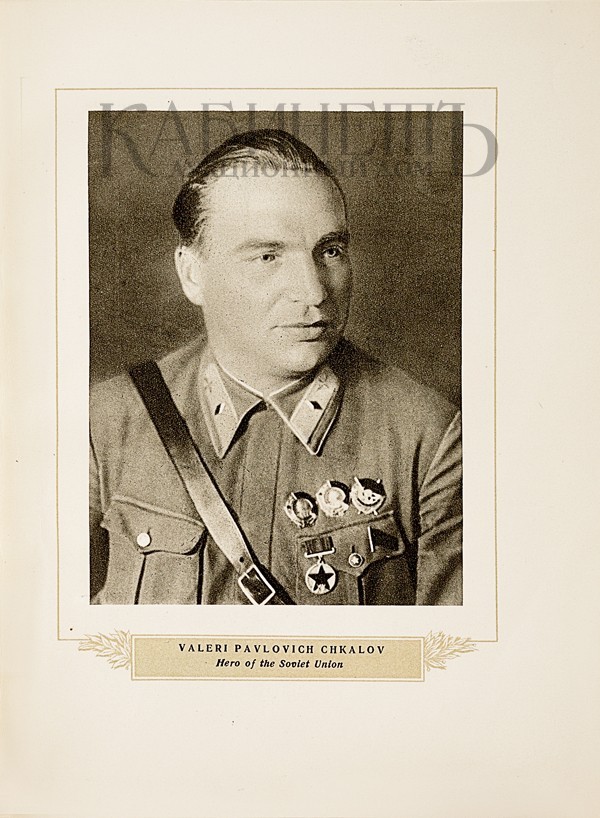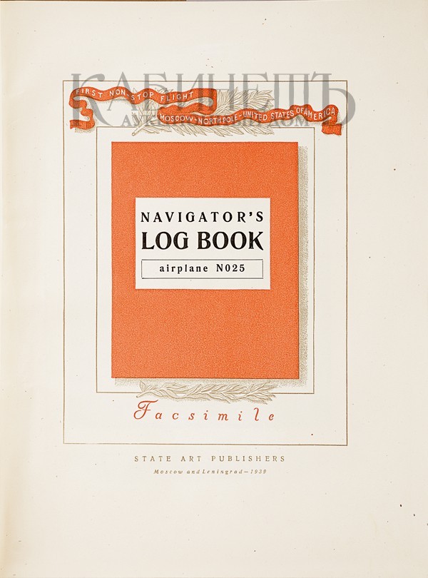 Редкость! Книга посвящена перелету В. Чкалова, Г. Байдукова, А. Белякова из Москвы в Америку через Северный полюс. Экземпляр в издательской коленкоровой папке с цветным тиснением по корешку и конгреным тиснением по верхней крышке. В папку вложено две книги: на русском языке – факсимиле штурмановского бортового журнала; в издательском коленкоровом переплете с бумажной наклейкой на верхней крышке; и на английском языке – с очерком о летчиках – героях, штурмановским журналом, картами, диаграммами, портретами летчиков, фотографии встречи героев, в издательской бумажной обложке с конгревным тиснением по верхней обложке. На задних крышках расположен № 1949.