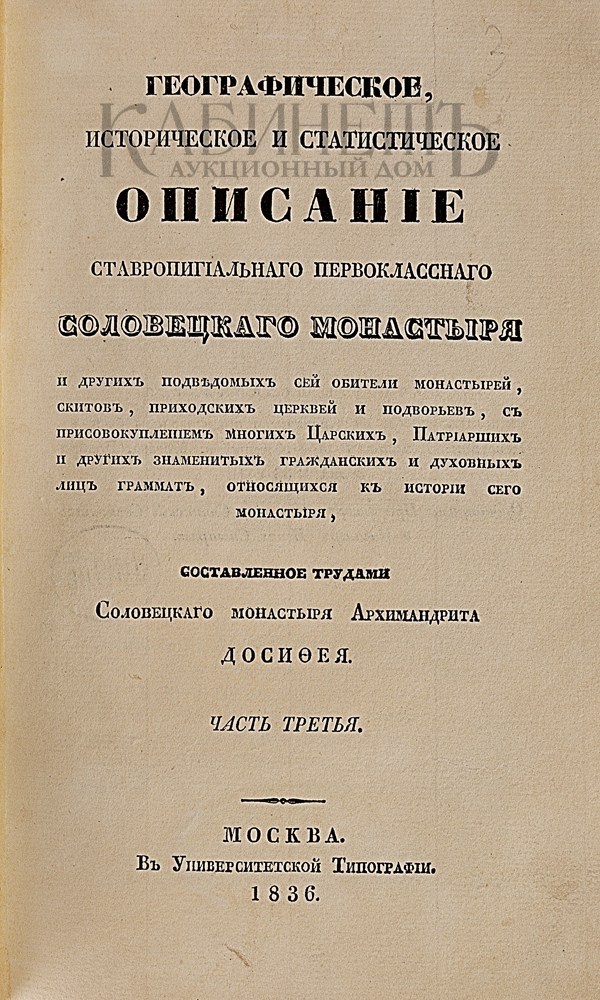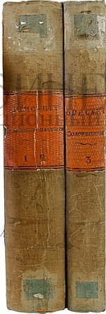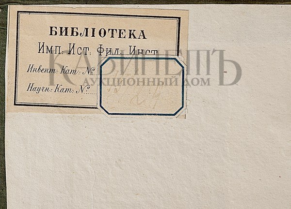 Экземпляр в старинных коленкоровых переплетах с полихромным тиснением по корешку. На шмуцтитуле штамповый экслибрис: «ИМУТ».