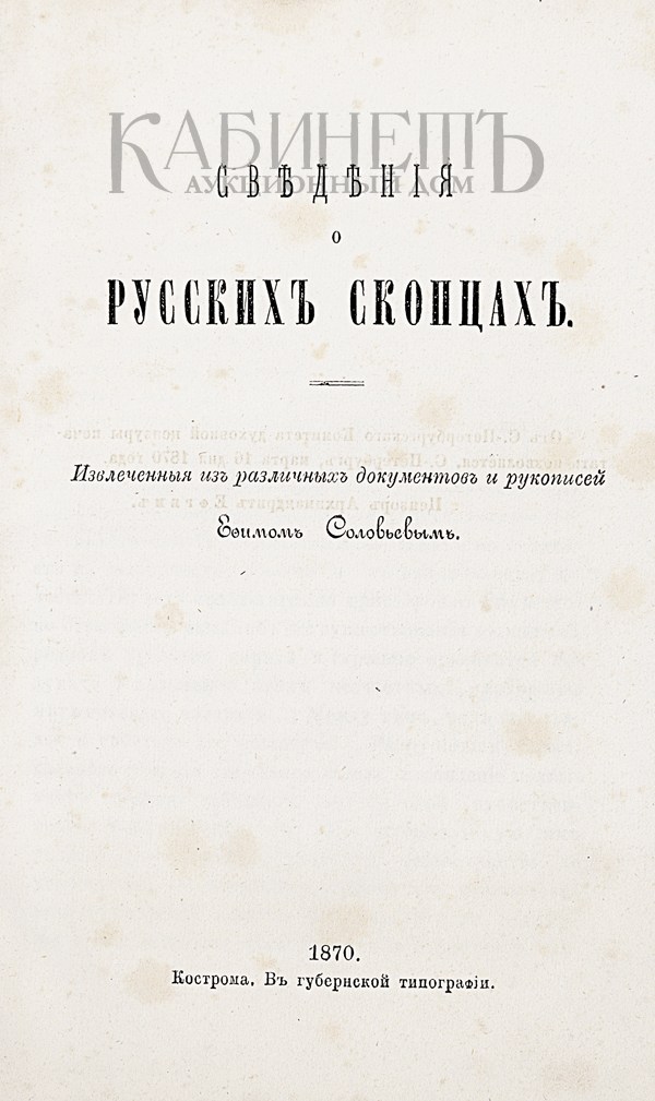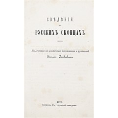 Соловьев Е. Сведения о русских скопцах. Извлеченные из различных документов и рукописей. Кострома, Губернская типография. 1870.