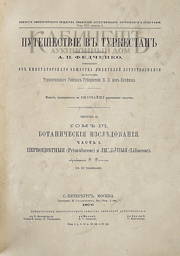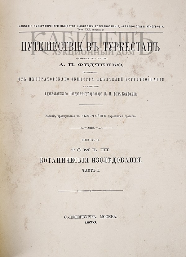 Экземпляр в современном полукожаном переплете с золотым тиснением по корешку и крышкам. Профессиональная реставрация страниц: надставлены утраченные фрагменты. Обложка и титульный лист мытые.