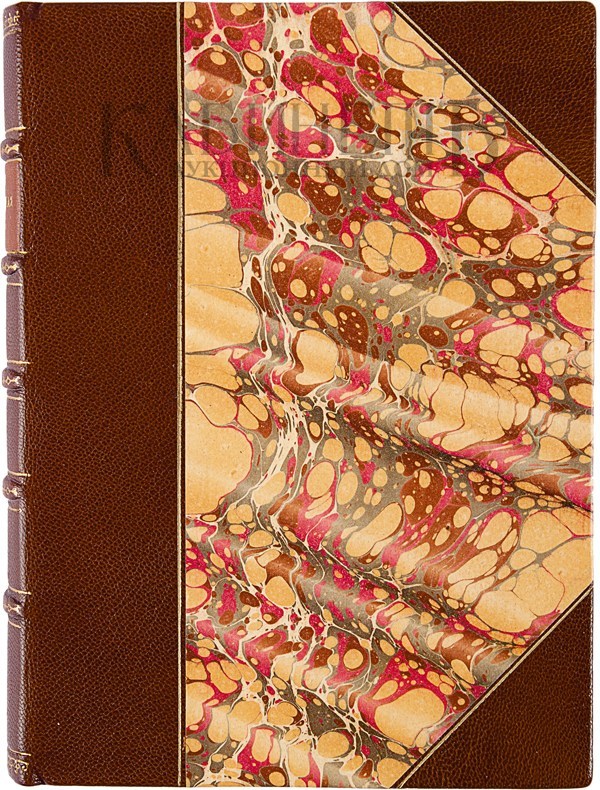 Экземпляр в современном полукожаном переплете с золотым тиснением по корешку и крышкам. Следы влаги на страницах книги. Владельческие пометки красным карандашом в тексте.
