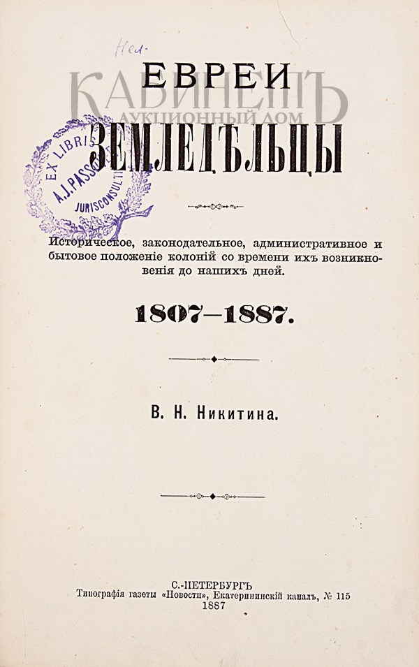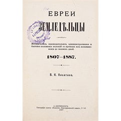 Никитин В.Н. Евреи-земледельцы. Историческое, законодательное, административное и бытовое положение колоний со времени их возникновения до наших дней. 1807-1887. СПб., Типография газеты «Новости», 1887.