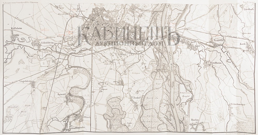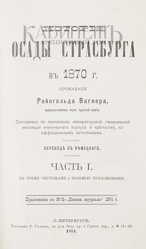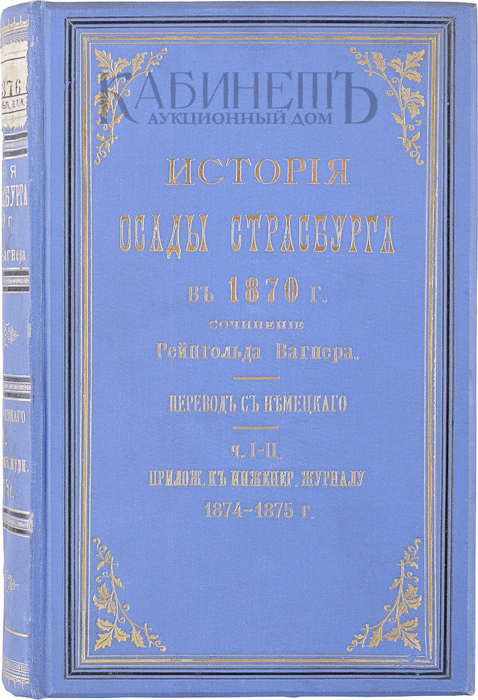 Экземпляр в современных коленкоровых переплетах с золотым тиснением по корешкам и верхним крышкам, в специально изготовленном футляре. След воды по нижнему краю страниц второго тома. Загрязнение чертежей и некоторых страниц. Загрязнение корешков.